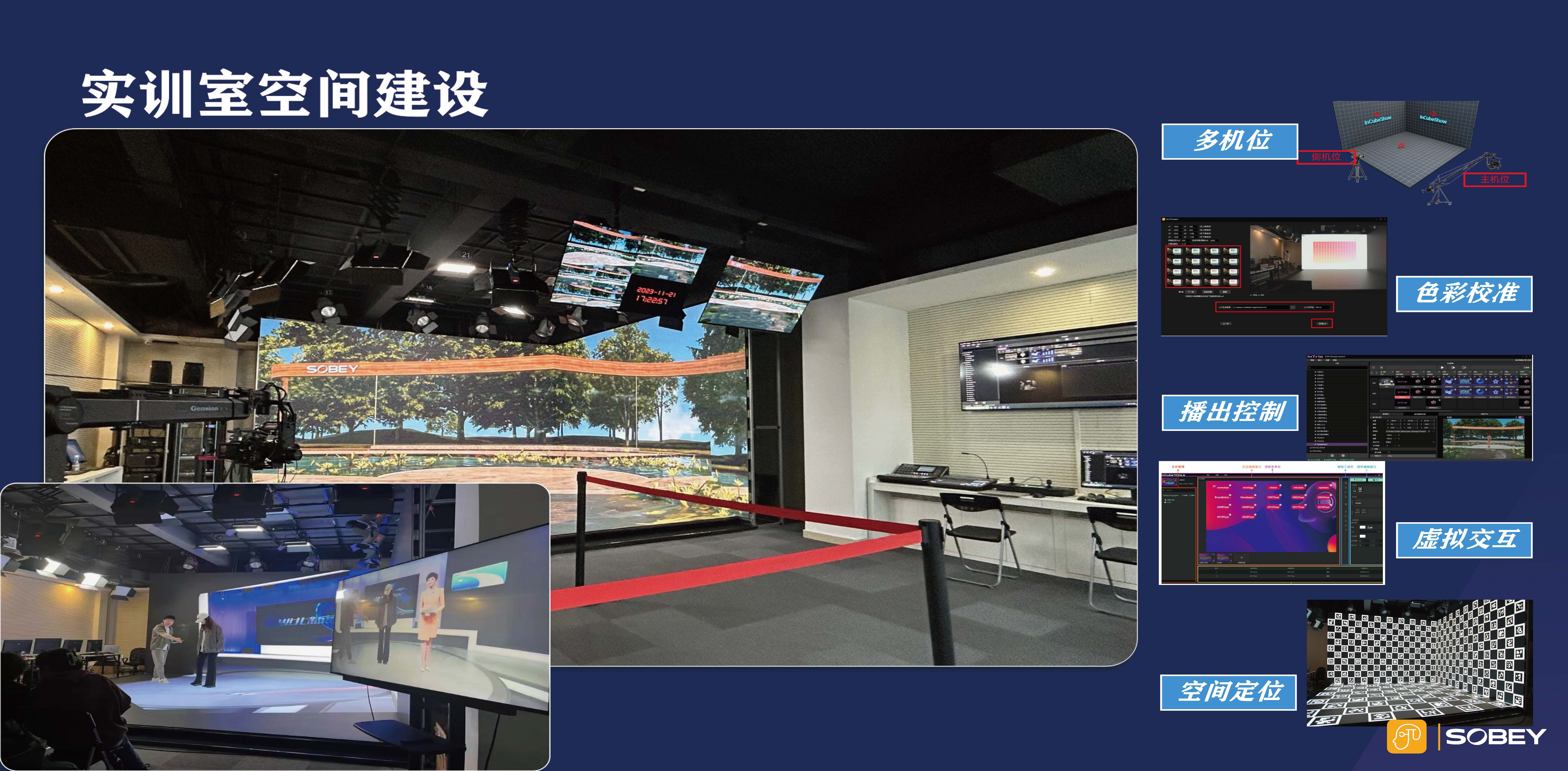 通过构建集XR沉浸式演播区、AI智能交互练习区、小组协作研讨区于一体的智慧实训空间,营造高度仿真的跨国界语言环境。强调 “项目式” 与 “跨学科” 协作,通过模拟真实项目流程,培养学生的创新思维、技术整合与团队协作能力,使其不仅成为技术的运用者,更成为适应XR与AI融合趋势的创造性学习者。